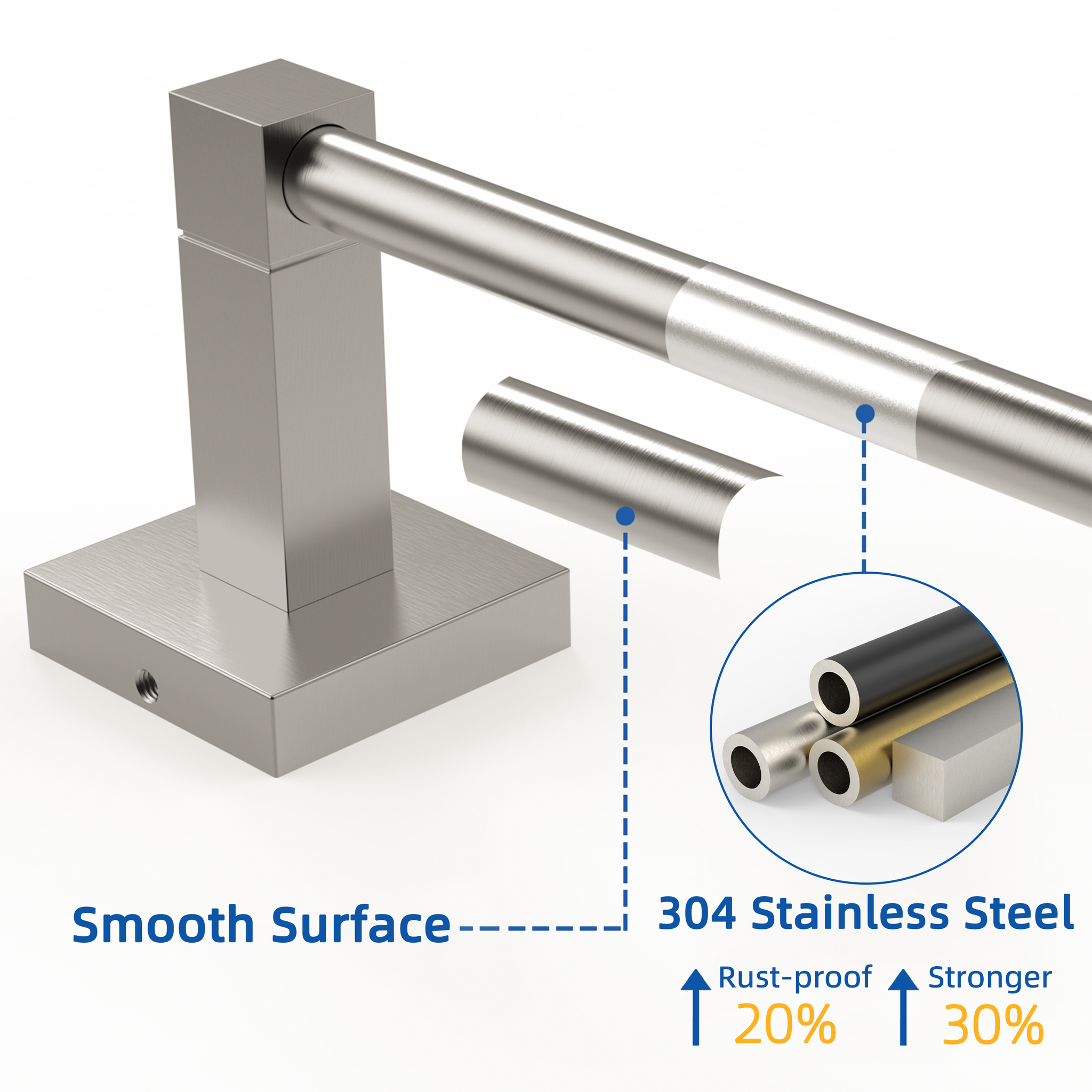 - [Square Base] This bathroom accessories design adopts a square base design, make this brushed nickel towel bar more simple and generous