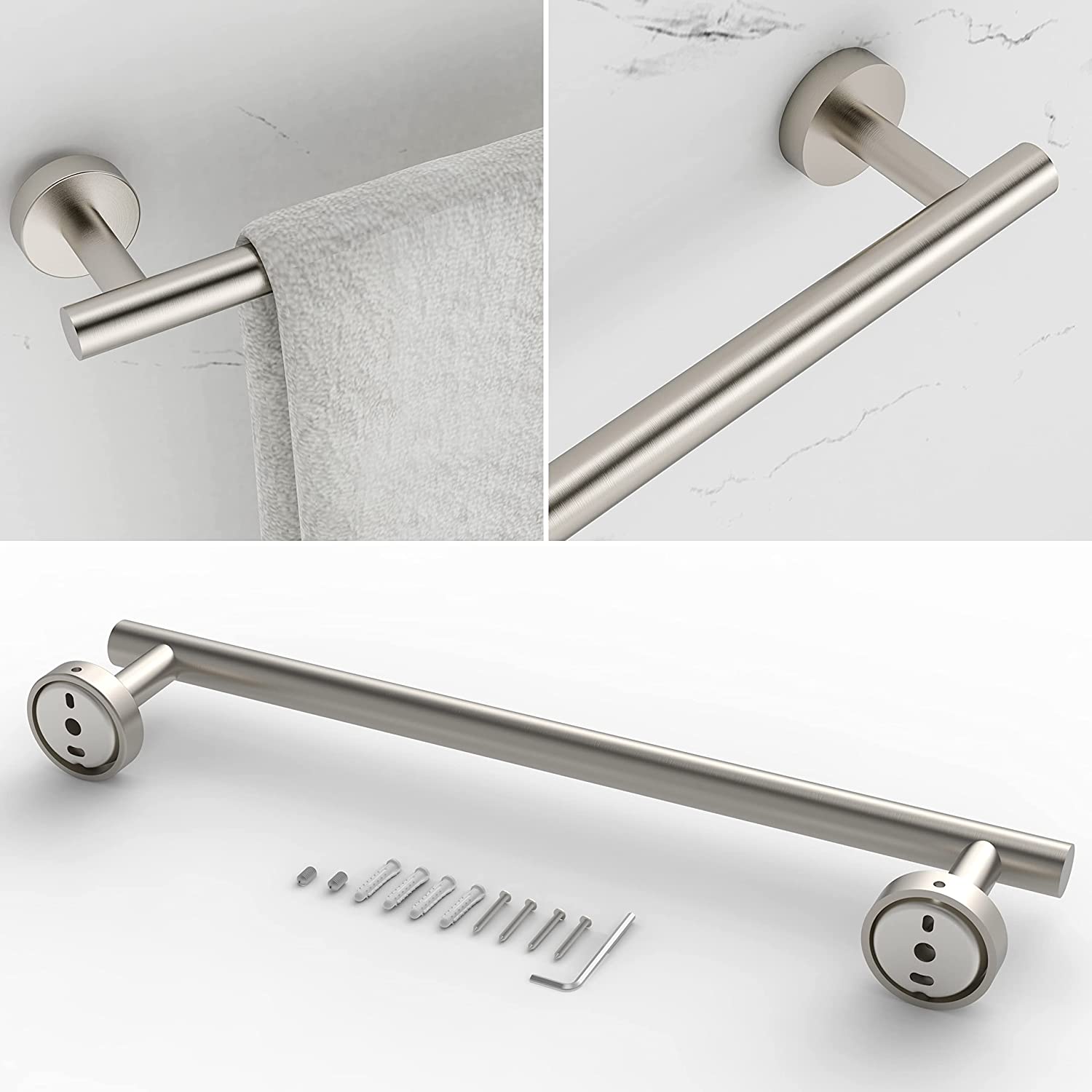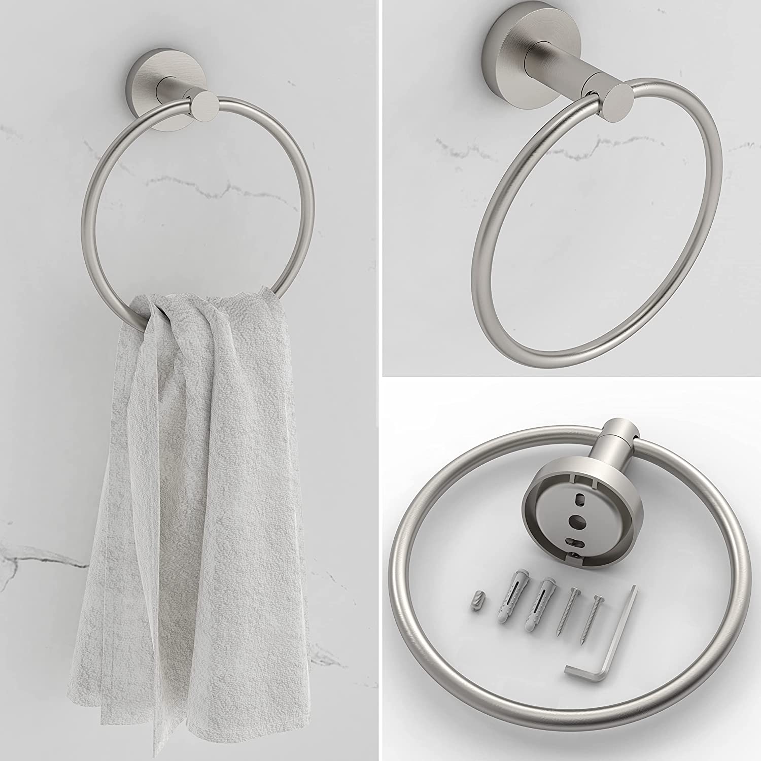 Easy to install: Easy to install, comes with hardware kit for wall mounting. Includes template and instructions. Once the hand towel ring tissue holder is installed, the bracket and set screws will provide a firm grip to keep it in place.