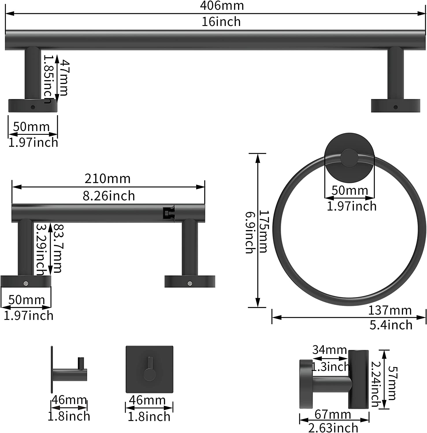 - Durable: Durable and rustproof. The 6-pieces bathroom hardware set for bathroom including 16 inch towel bar, toilet paper holder, towel ring, towel hook,2pcs 3M adhesive hooks. They are made of high quality 304 stainless steel. The most ideal material for humid environments, suitable for using in bathrooms, kitchens, and RVs. This bathroom toilet paper holder is designed to last and rustproof design ensures your toilet paper stays clean and hygienic.